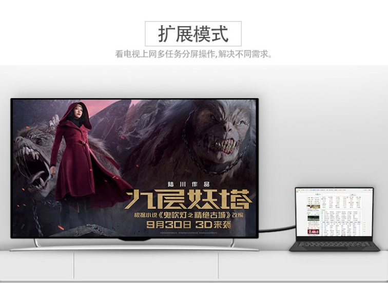 1、屏幕擴(kuò)展---電視看電影,電腦同時上網(wǎng)、玩游戲