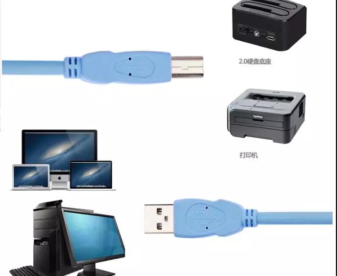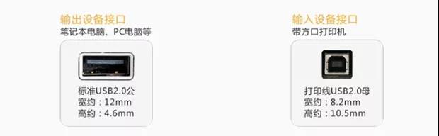 USB/公端子插入筆記本電腦或PC電腦等輸出設備對應接口,另一端B公端子出入方口和相同方口的產(chǎn)品等輸入設備連接口之間的數(shù)據(jù)傳輸。