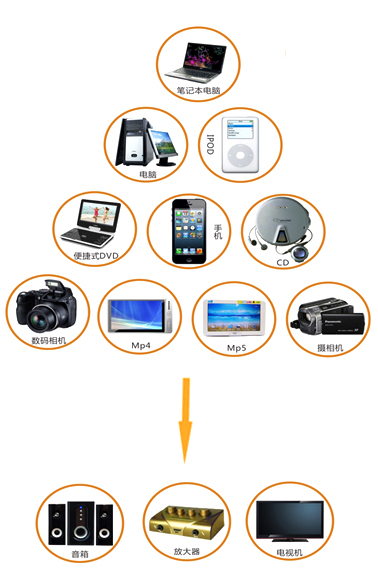 3.5一分為二音頻線 與放大器連接