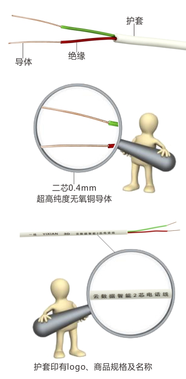 二芯屏蔽電話(huà)線(xiàn)護(hù)套 2、表面光滑,印字清晰,無(wú)破損及污垢 耐油耐磨耐酸堿增長(zhǎng)使用壽命達(dá)15年以上