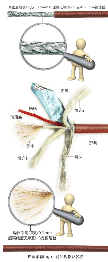 產(chǎn)品:2芯各分28支+4支銅箔絲絞合+2束細(xì)棉紗+鋁箔+高密度編織=高保真結(jié)構(gòu)設(shè)計(jì)并制造有效提升音質(zhì)并使音頻信號(hào)達(dá)到最佳效果 導(dǎo)體:抗氧化強(qiáng),降低衰減和損耗 絕緣:雙絞線,增強(qiáng)音頻信號(hào)傳輸 填充:加強(qiáng)抗拉強(qiáng)度使線材圓潤(rùn) 鋁箔:增強(qiáng)屏蔽信號(hào),杜絕外界強(qiáng)電磁干擾 編織:編織加鋁箔完全杜絕外界強(qiáng)電磁干擾,聲音傳輸清晰不失真 護(hù)套:優(yōu)質(zhì)高彈性PVC原料耐油耐磨耐酸堿增長(zhǎng)使用壽命達(dá)15年以上 噴米:保證100%足米