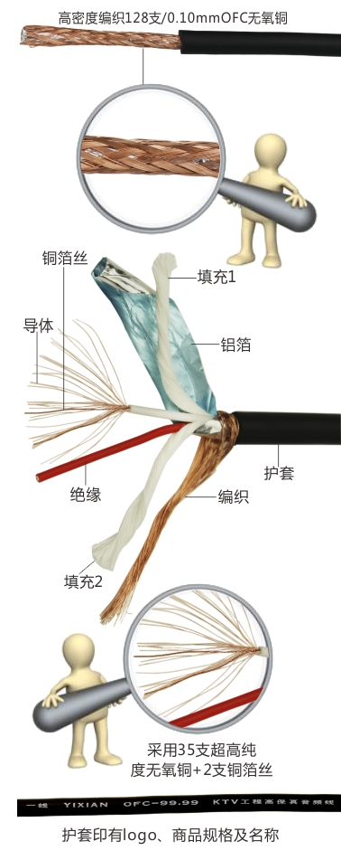 產(chǎn)品:2芯各分35支+2支銅箔絲絞合+2束細棉紗+鋁箔+高密度編織=高保真結(jié)構(gòu)設(shè)計并制造有效提升音質(zhì)并使音頻信號達到最佳效果 導(dǎo)體:抗氧化強,降低衰減和損耗 絕緣:雙絞線,增強音頻信號傳輸 填充:加強抗拉強度使線材圓潤 鋁箔:增強屏蔽信號,杜絕外界強電磁干擾 編織:編織加鋁箔完全杜絕外界強電磁干擾,聲音傳輸清晰不失真 護套:優(yōu)質(zhì)彈性PVC原料耐油耐磨耐酸堿增長使用壽命達15年以上 噴米:保證100%足米