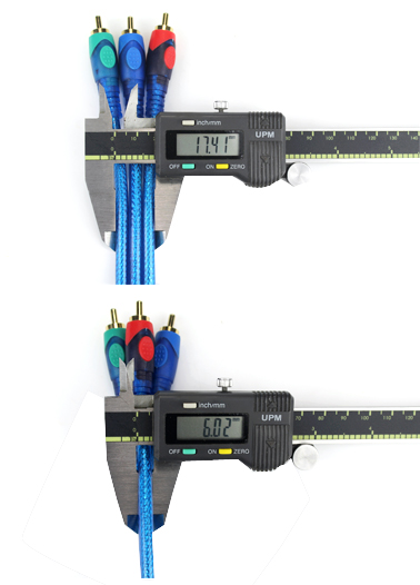 色差線接口 1、標(biāo)準(zhǔn)RCA/公端子接口 2、接駁方便,撥插力度適中 |