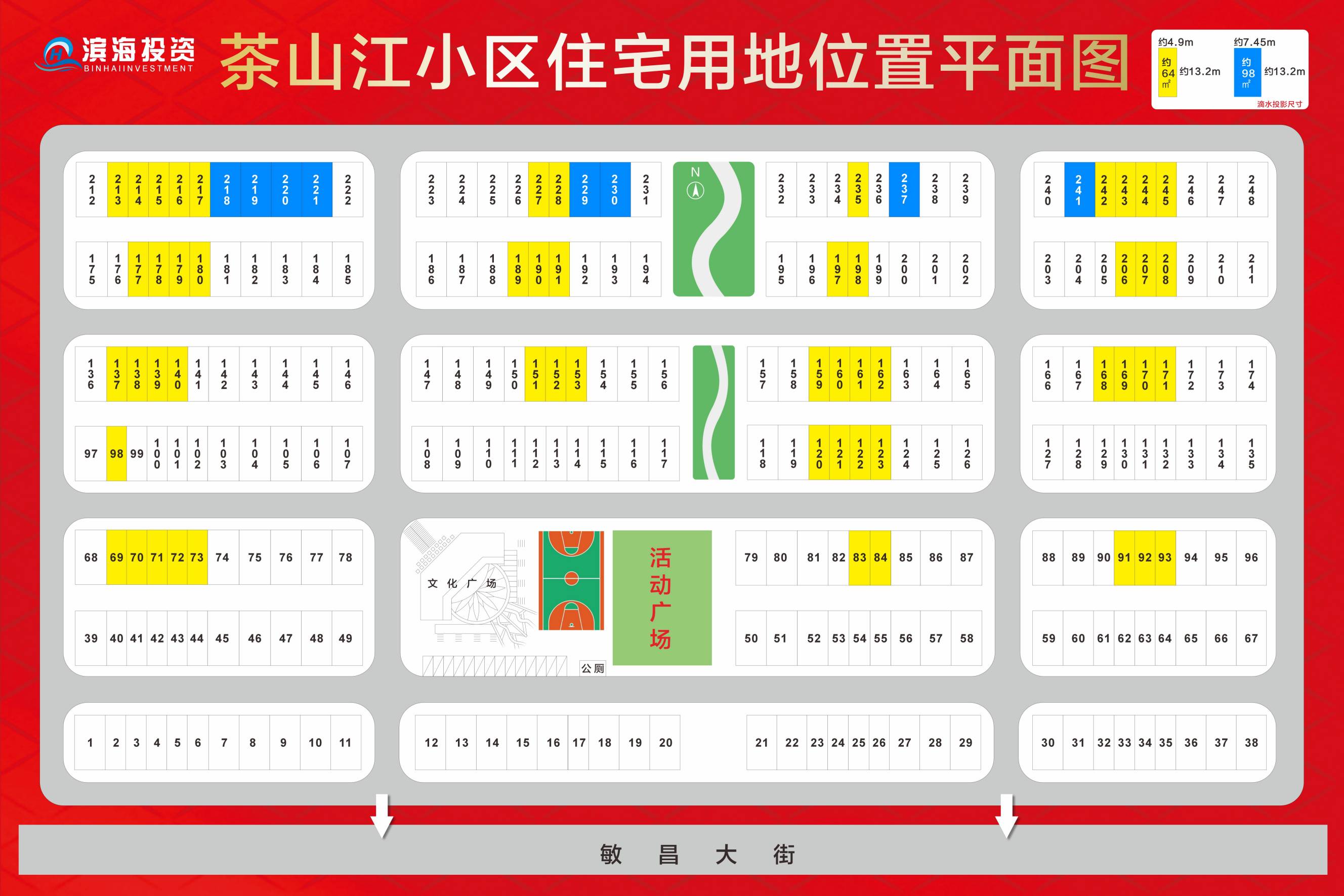 (二)本次出售住宅用地62套,其中土地使用權(quán)面積為64.68㎡的住宅用地共54套,土地使用權(quán)面積為98.34 ㎡的住宅用地共8套(詳見附件2“茶山江小區(qū)住宅用地位置平面圖”)。