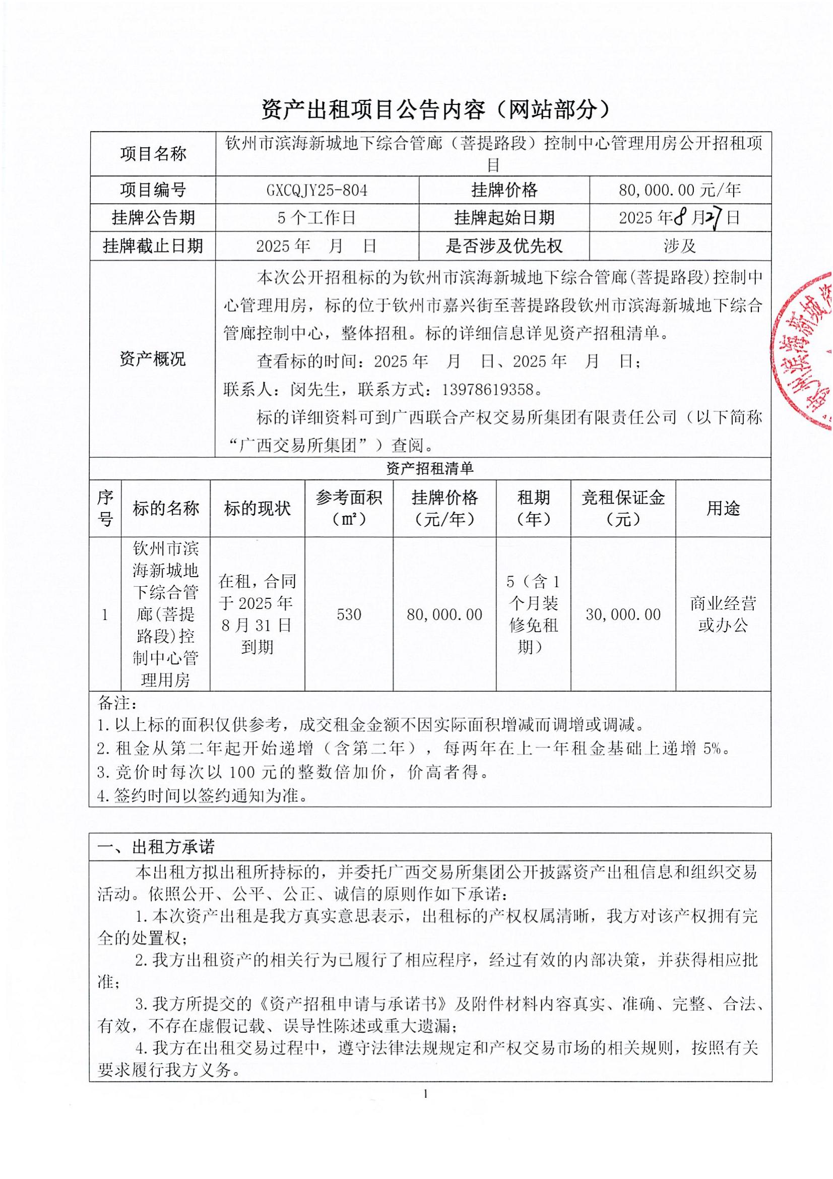 資產(chǎn)出租項目招租公告