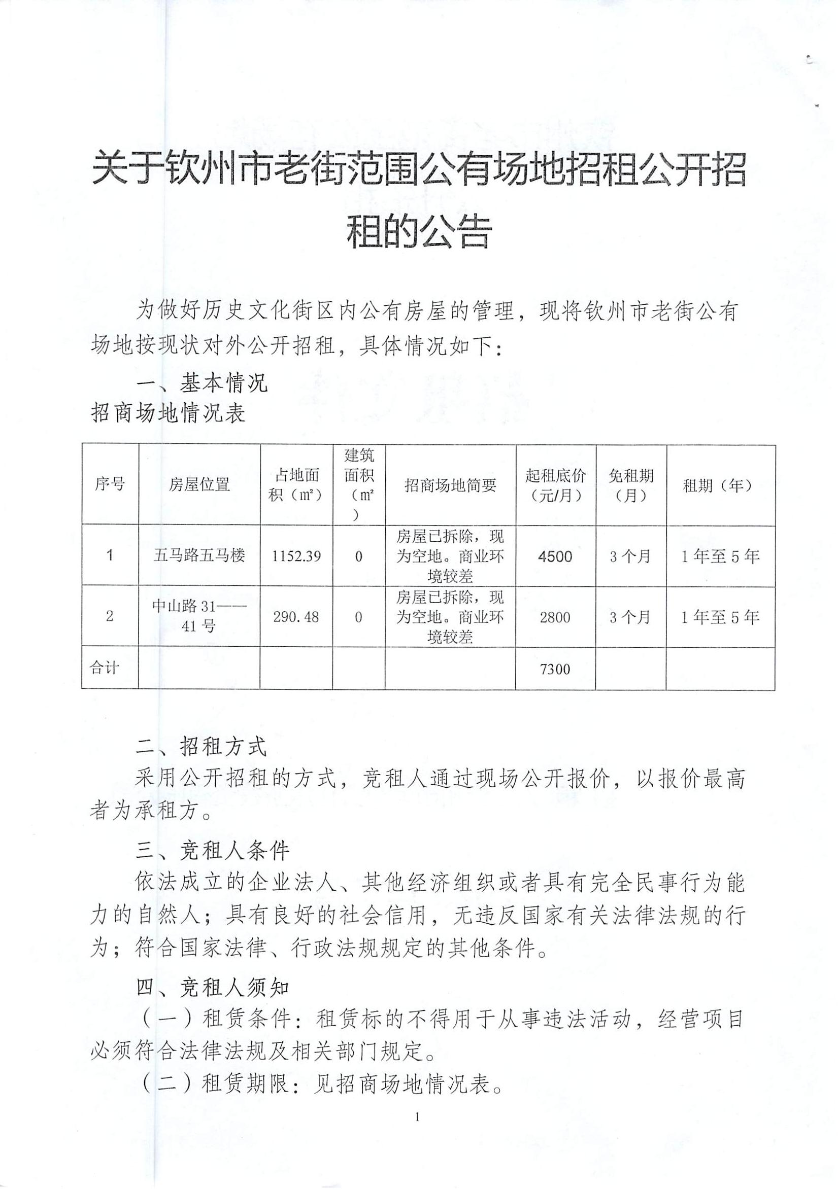 欽州市老街范圍公有場(chǎng)地公開(kāi)招租