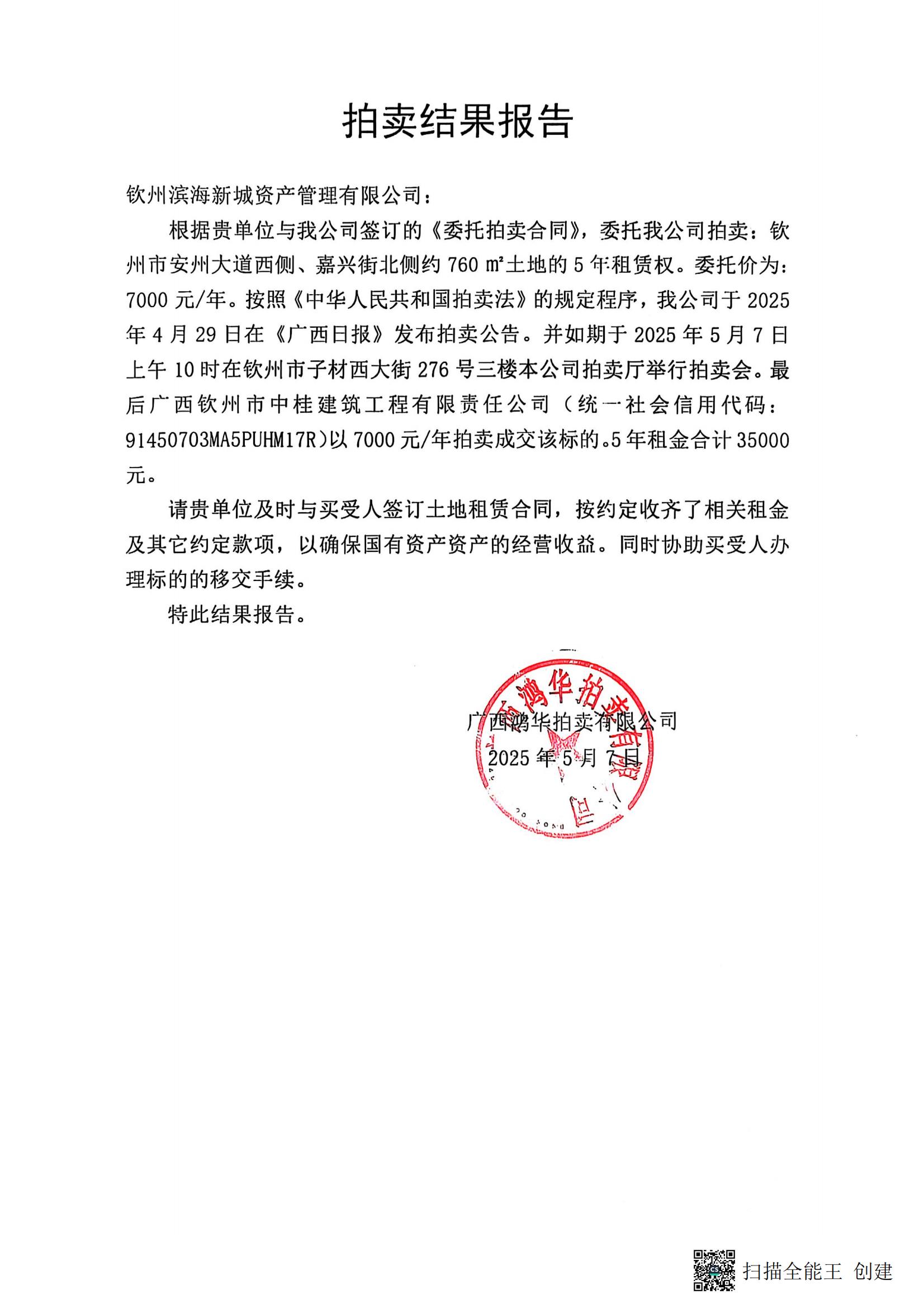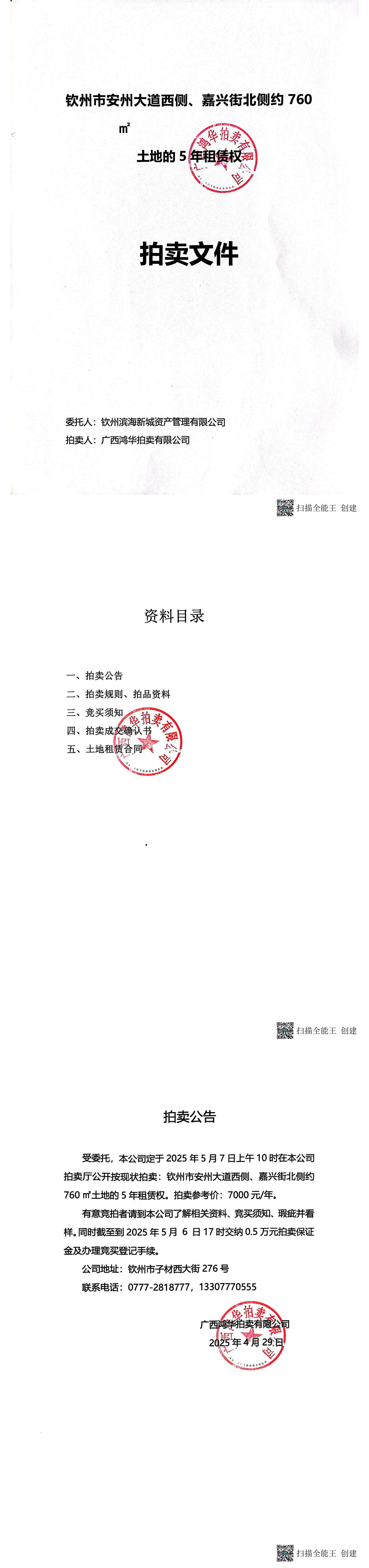 欽州市安州大道西側(cè)、嘉興街南北側(cè)約760㎡土地的5年租賃權(quán)拍賣(mài)文件