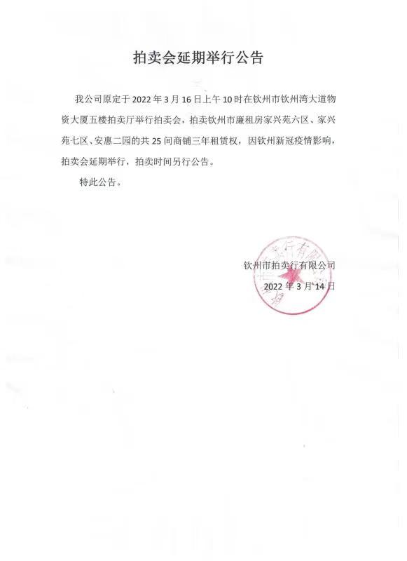 商鋪?zhàn)赓U權(quán)拍賣公告(家興苑六、七區(qū)和安惠二園)