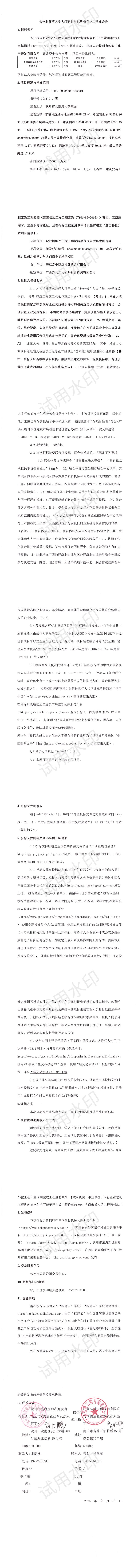 欽州北部灣大學(xué)大門商業(yè)街地塊項目施工招標公告