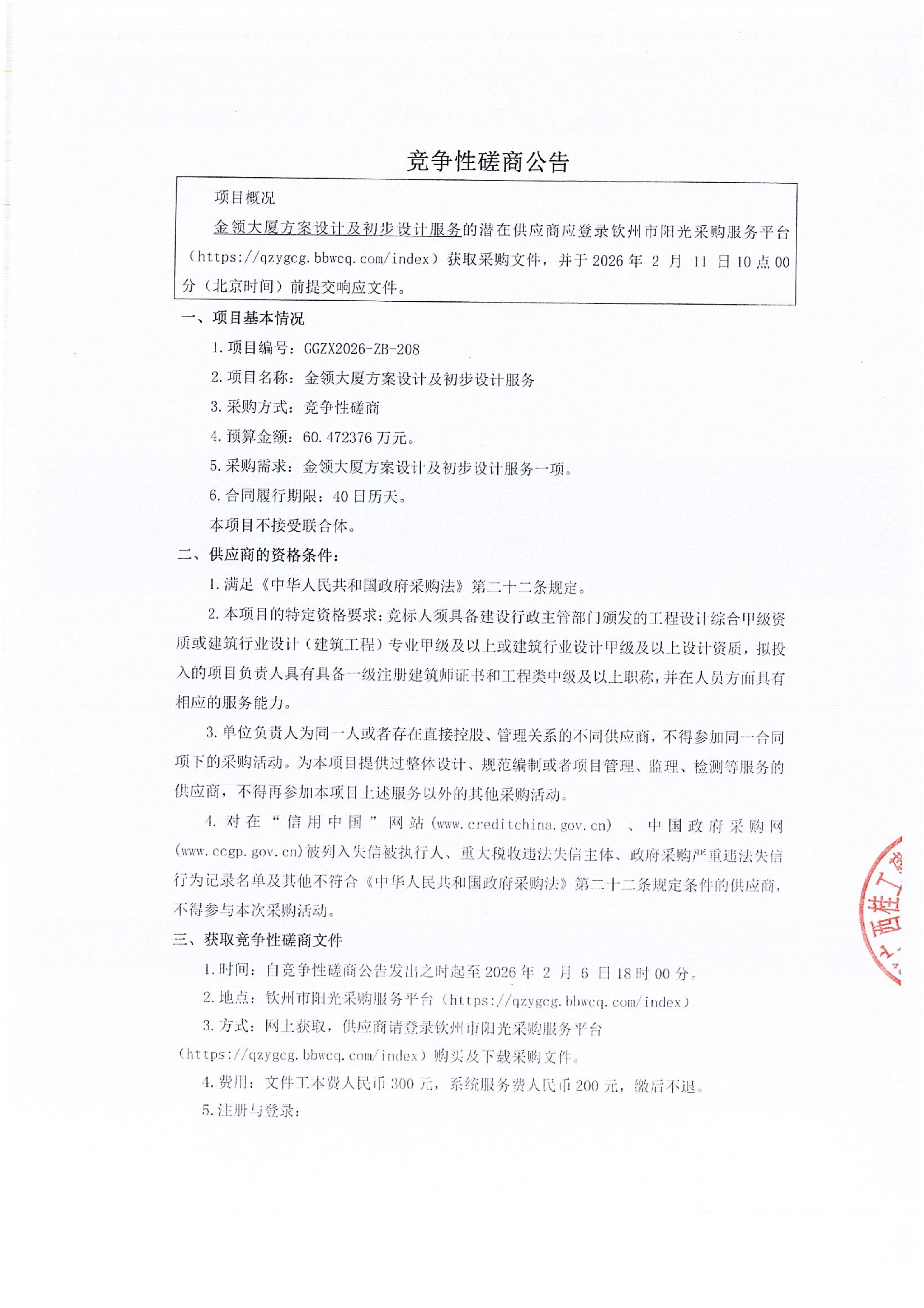 競爭性磋商公告(欽州市第二中學(xué)蓬萊校區(qū)項目場地清表工程(第二批))