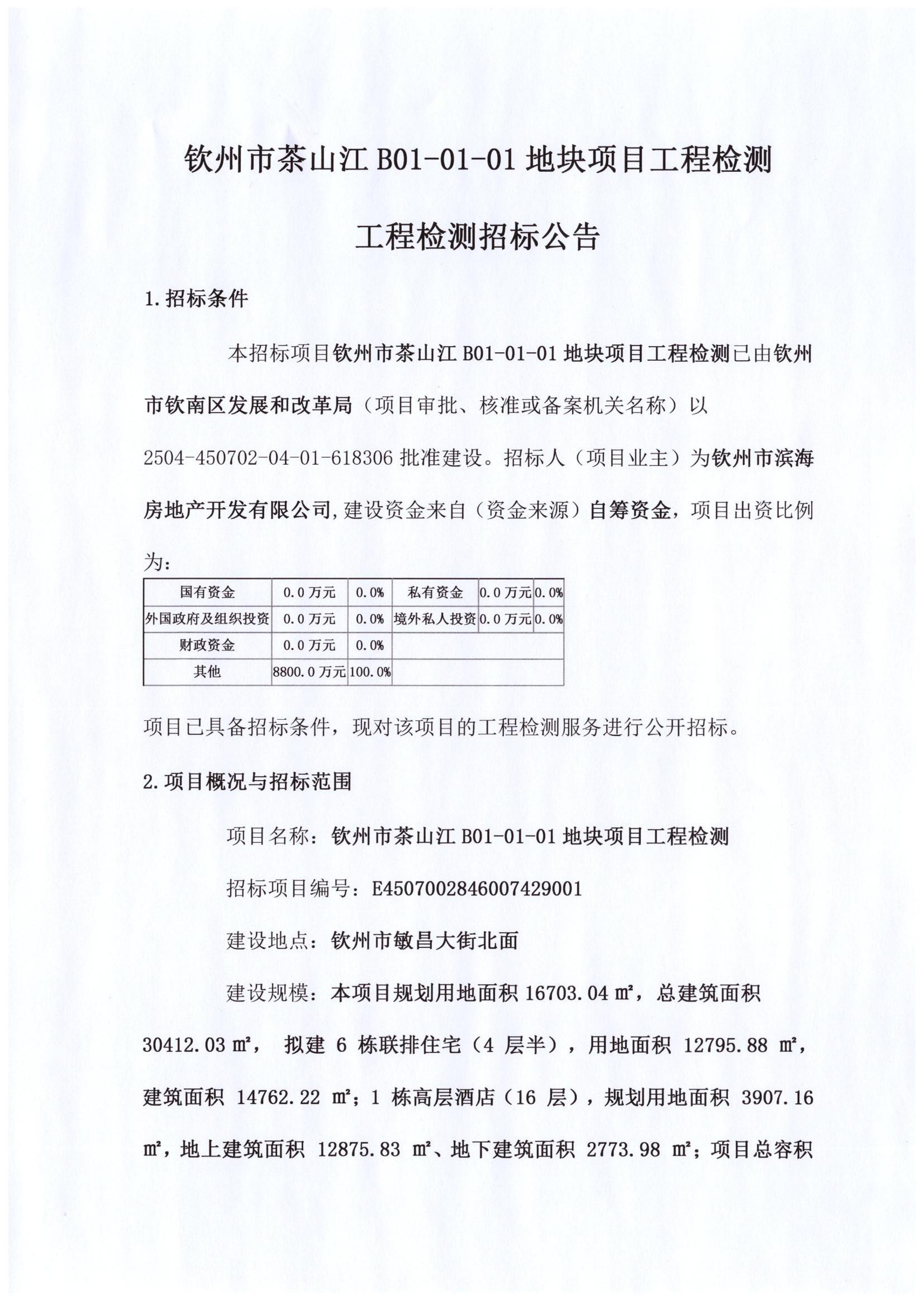 欽州市茶山江B01-01-01地塊項目工程檢測工程檢測招標公告